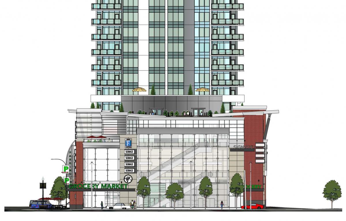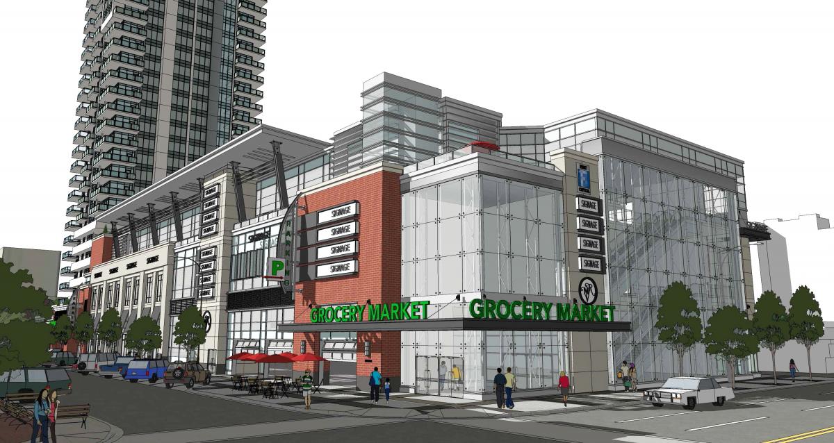 The proposed mixed use development by First Capital Realty will include condominiums, a natural foods grocery, ground floor retail spaces and streetscape improvements like: