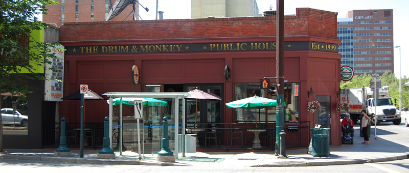 When Calgary’s nightclub strip lay along 1st Street S.W. in the late 1970s and early 1980s, this was the home of Slack Alice’s (later renamed Slack Jack’s). It was known as a pickup joint and reportedly provided table-to-table telephone service. The “strip” shifted to 11th Avenue in the 1980s, but nightlife later returned to 1st Street, and the Drum and Monkey opened here in 1999.