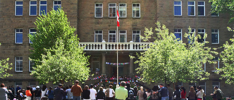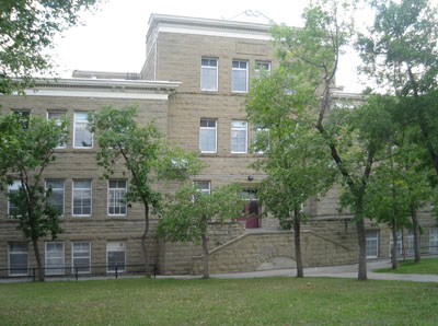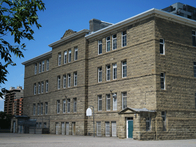 Between 1909 and 1913, the height of the building boom in Calgary, over thirty schools were built to meet the city's growing population. Twelve of these schools were of high quality, sandstone masonry, a preference of the school system for numerous reasons. The most significant was the desire to finance and build schools that would "last for the next seventy-five years." School officials also wanted safe buildings and used both stone construction and slate roofs to reduce fire hazards. Connaught School is one of the largest sandstone buildings in this group and is most similar in design to the Colonel Walker School. Originally completed in November of 1911, the school was two storeys with a centred third storey, twelve rooms, and full basement. In 1920, an addition was made to the third storey to accommodate a continuous overflow of students. The initial costs of Connaught School were well over $100,000. Architects Lang & Dowler worked closely with the School Board's draftsman, A.W. Branton, who later became the Board's chiefarchitect. The contract was given to Peers & MacLeod and required the use of the day's most experienced stone cutters. Of free Classical design, Connaught School is a block-like form. The main entrance is approached by a divided staircase covered by a columned portico and balustrade. A roof cornice covers the building, while white moulding and balustrade provide a strong contrast to the rough cut sandstone. The south elevations have separate entrances for the boys and girls, a common feature of the day. Somewhat isolated in 1912, Connaught School was an imposing structure in the Connaught district (i.e., Beltline). Just two blocks west of Calgary Collegiate, these district school buildings solidified institutional growth in the developing residential district. Considered to be very modern and large for its time, the school did not meet the requirements of population growth through the 1920s. Overflows were sent to other cottage schools. In 1953, a gymnasium was added to the east wing of the building at acost of $82,688. Architect J.A. Cawston was responsible for this addition. Today, Connaught School is actively used with no significant alterations to the building, outside of the 1920 and 1953 expansions and fire damage to the main entrance in 1950.Since 1912, many of Calgary's leading citizens have attended Connaught School including Rhodes Scholar and present day politician Sheldon Chumir. The school is named in honour of the Duke of Connaught, Governor General of the day. In 1912, R.B. Bennett presented the Duke with an album prepared by the Calgary School Board boosting the facilities of Connaught School, and in return, the Duke of Connaught presented the school with portraits of himself and his Royal Consort. These remain in the offices of Connaught School. (1992) |
