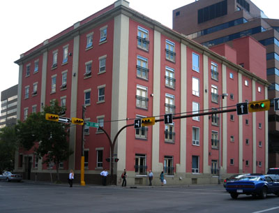 1912 535 10 Avenue SW This large, five-storey warehouse was built by the Hudson's Bay Co. in 1912 to provide adequate storage facilities for the Company's new department store on 8 Avenue SW, which opened in 1913. Shortly after the Government Liquor Control Act was passed in 1924, the newly formed Liquor Control Board rented office and warehouse space in this building to supplement its primary accomodation in Edmonton. In 1935, the warehouse was sold to Safeway Stores Inc., and it remained the home of the Calgary Division of Canada Safeway Ltd., wholesale and retail grocers, for nearly sixty years. The otherwise utlitarian and plain brick building is enlivened by giant brick pilaster strips which reach from the base to the tin cornice. The building illustrates the nature and function of large, tract warehouses built along spur lines in this district. It has the distinction of having been occupied and owned by some of Calgary's most significant buisinesses. In 1993, the building was sold by Canada Safeway Ltd. and developed into Calgary's first New York-style loft condominium project, renamed the Hudson. |
