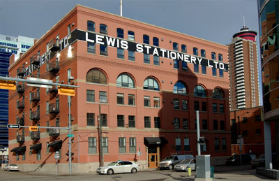 From its construction in 1910 until the early 1970s, this was the warehouse of the J.H. Ashdown Hardware Co. James H. Ashdown migrated from Ontario to the Red River Settlement in 1865, arriving by oxcart, and by 1869, was established in the hardware business. His form grew to become a major Winnipeg company, and Ashdown established his firm in Calgary in 1889 by purchasing the Calgary Hardware Company. Ashdown became a prominent Winnipegger, and served as mayor of that city in 1906-1907. The Calgary warehouse was originally four-storeys high, characterized by the arch-and-spandrel design motif often associated with the work of American architect H.H. Richardson. The Ashdown Warehouse is the best surviving example in Calgary of this North American warehouse style. The two top floors were added only a year after the completion of the building, as business grew. This flexability and expansion is typical of the more successful Calgary business and warehouses of the period. The warehouse was aquired by Lewis Stationary Limited in 1972. In the early 1990s, the J.H. Ashdown Warehouse was rehabilitated to accomodate residential condominium units. |
