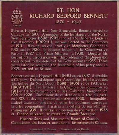 Richard Bedford Bennett (1870-1947), was the 11th Prime Minister of Canada. And although he grew up in Hopewell Cape, New Brunswick, many of his key professional years were spent in Calgary.
