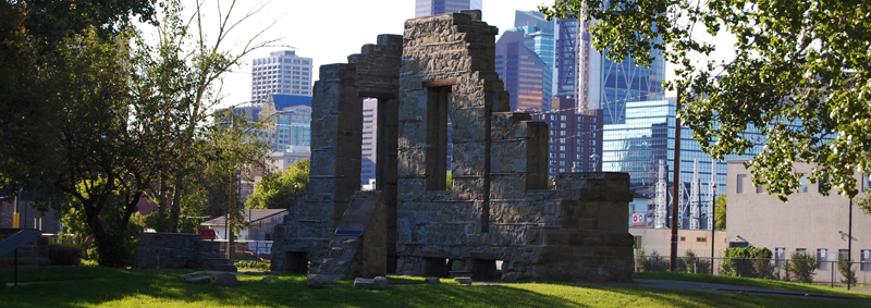 1899 632 13 Avenue SE In 1894, the city of Calgary was incorporated. The citizens had already realized that a new hospital was needed as the city was growing larger than the original General Hospital could accommodate. The first General Hospital had only been an old rundown house at 733 7th Ave SW. It was rented a building that was falling apart. It had come complete with bullet holes. $10,000 was allocated by citizen's to construct a new hospital. A community endeavour, the hospital was financially supported by Calgary's establishment including A.E. Cross, William Pearce, and the tireless fund-raising of Mrs. Pinkham, wife of Calgary's Anglican Bishop. However the first donation didn’t come from these financial tycoons of the city, the first endowment was a gift in the will of Jimmy Smith, a prominent Chinese-Christian business man who was well loved in the community. When he died of consumption (Tuberculosis) in 1890, through his will he left $1500 to build a new hospital (that’s roughly the equivalent of $35,926.87 in 2010). His contribution was remembered and honoured by the Alumnae Association of Calgary General Hospital School of Nursing in 2001, when they restored his tombstone and laid a commemorative wreath to remember his incredible gift to this city. These ruins are the remnants of the second general Hospital that was built here in1894, from the funds donated by the citizens of Calgary. This building, the first real hospital in the area, served as a vital resource for the large numbers of poor and destitute farmers in the area who had come to Alberta in hopes of finding a future. The new facility featured 35 beds, an operating room, and a nursing school. It even had electric lights and telephones. The hospital grew and developed with the burgeoning city. To meet the demands of population growth, several additions were made: a maternity wing in 1899, a second two-storey ward in 1903, and another maternity wing in 1905. By 1908, the hospital had outgrown its facilities, and a new hospital was constructed across the Bow River. When the newer third General Hospital on the other side of the Bow was built in 1910, the hospital remained in use as an isolation hospital for the chronically ill for 44 years. In 1954, when the third General Hospital opened its own isolation wing, patients were moved from this building in what was called “operation measles”. In 1953, the building was leased to the United Church of Calgary who opened a seniors' residence two years later. In February of 1971, the property was acquired by the Metropolitan Foundation of Calgary from the City. The Province offered to erect a new building on the site recommending the demolition of the original buildings. One of Calgary's most heated heritage debates ensued. A Provincial recommendation suggested that the building was not of regional importance, and the demolition that followed despite attempts by a local protest group, led by architect Jack Long, to lobby for the rehabilitation of the building. One of Calgary's earliest examples of formal architecture, the hospital was designed in a simplified Romanesque style typical of the late 1900s. Designed by Calgary architects Child & Wilson, it was an early use of sandstone on a large scale project. The site is a strong representation of Calgary's maturing corporation prior to the turn of the century. The new site had been officially granted by the Federal Government as a hospital property in 1883. Because the property was not in City limits, the City would not endorse the construction of the 1894 hospital north of the Bow River and, as a result, the hospital was built in Victoria Park. . to offer comments, corrections, or improvements to this article, email: heritage@beltline.ca