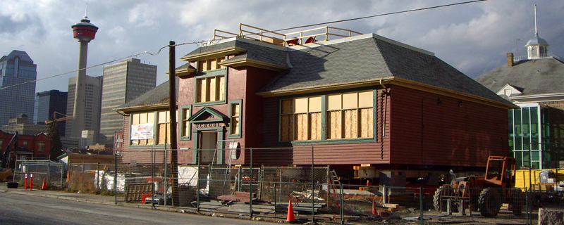 1919 411 11 Avenue SE Victoria Bungalow School was constructed in 1919 to expand upon the existing school site facilities. Representing a movement towards reduced expenditure on school buildings, it is an important city and community landmark. In the prosperous and expansive years of 1905-1914, Calgary evolved modern and imposing school structures, such as the first Victoria School constructed in 1904, and its large 1912 addition. This pattern of school building was reversed after 1914, due to post-war economic decline. Although school enrollments increased, the Calgary School Board was forced to erect more modest buildings to house overflows. This, combined with a more regulatory role by the Alberta Department of Education with respect to building practices, lead to the formula development of frame and brick, vernacular, bungalow schools. One of six bungalow schools erected in 1919 and 1920, Victoria Bungalow School initially housed four classrooms. Although bungalow schools were built prior to the War, the intent of the Post-War bungalows became markedly different. Designed to be more permanent than the earlier cottage schools, the buildings of this period lost their residential appearance. Facade materials (bevelled wood siding) and classical detailing contributed to a more institutional massing. Victoria Bungalow School is formalized by its two-storey front entrance and imposing roof line, with extended eaves. A strong community reference point, Victoria Bungalow School contributes to a distinctive grouping of school buildings. The Victoria School Site is significant as it represents several phases in the evolutionary development of Calgary's public school system. The Victoria Bungalow School is recognized as a Category A building on the City of Calgary’s Inventory of Potential Heritage Sites. This category includes sites or buildings that have achieved an overall score between 75 and 100 points according to the Heritage Evaluation Scoring System. "Category A" sites or buildings are notable, unique, or rare. The Bungalow School is also being retained within the Arriva Condominium development project, but will be move to the south-central portion of the site. |