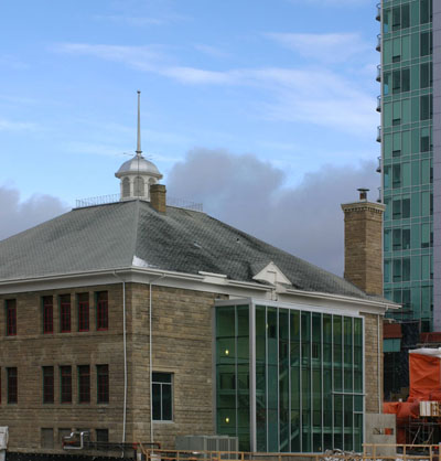 Victoria Sandstone School is an example of a substantial heritage resource that has been integrated into new development in Calgary. |