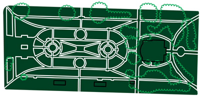 Home to the Central Library, fountains, sculptures, monuments, and the new Boxwood Cafe.